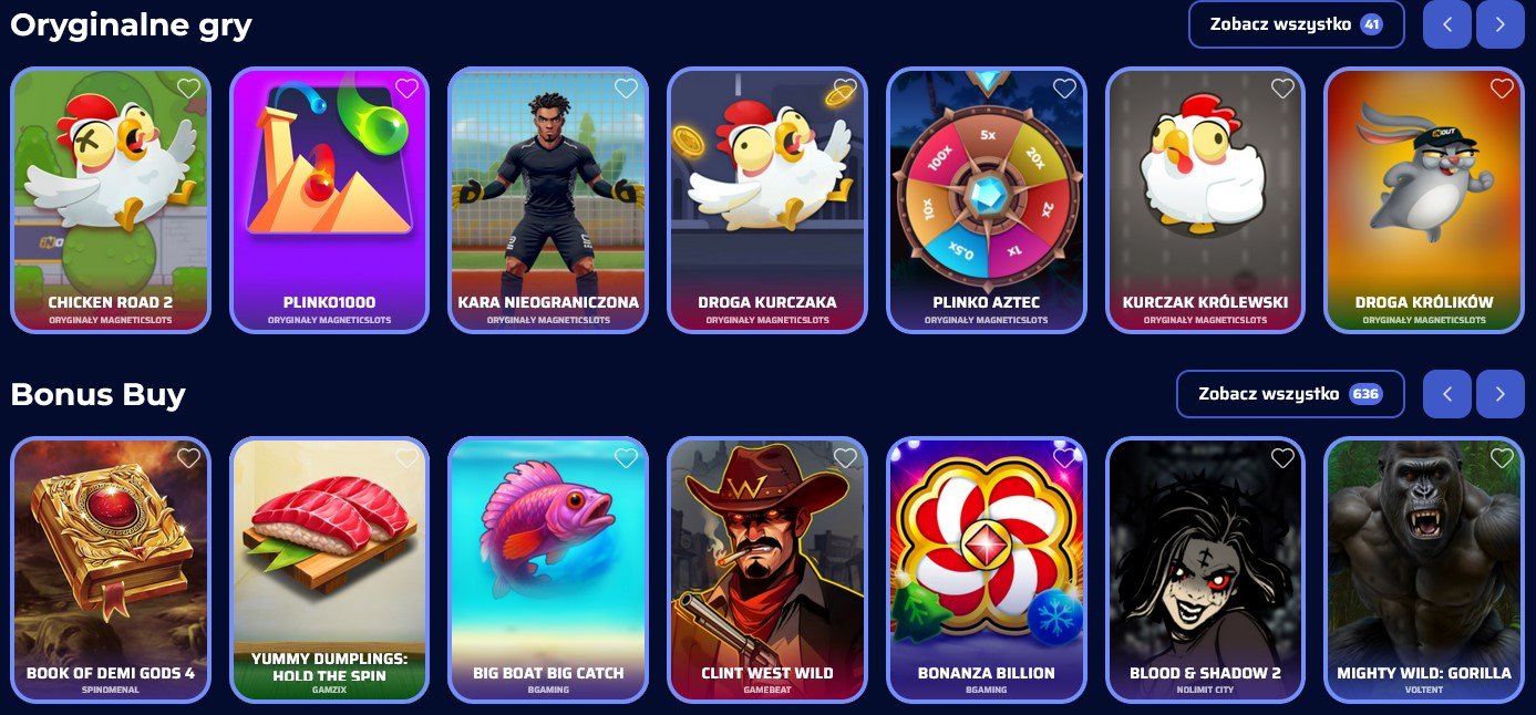 Założone w 2025 roku Magnetic Slots kasyno to międzynarodowa strona z grami hazardowymi dostępna 24/7. Atutem kasyna jest fakt, że zarówno strona internetowa, jak i obsługa klienta są dostępne w języku polskim. Gracze mogą dokonywać wpłat oraz wypłacać wygrane w polskich złotych, dostępna jest również polska obsługa klienta.