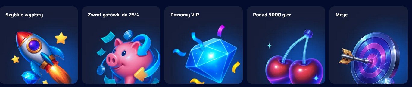Oferta rozrywkowa strony jest rozbudowana. Kasyno Magnetic Slots proponuje ponad 6000 gier w katalogu, 4 poziomy programu lojalnościowego oraz ekskluzywny klub VIP. Całość uzupełniają liczne promocje, w tym bonus powitalny na pierwsze trzy depozyty o łącznej wartości do 7500 zł.